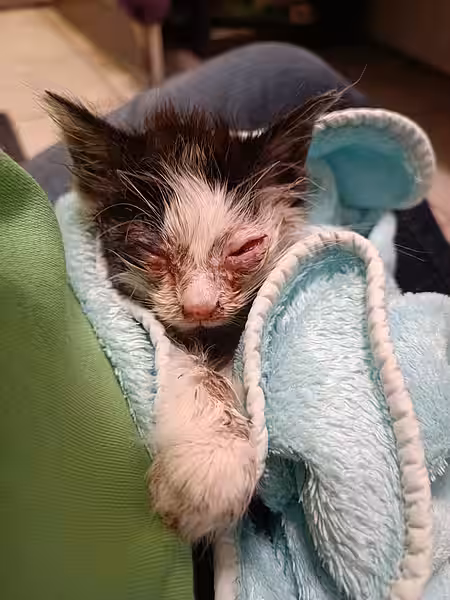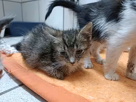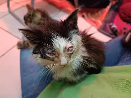 Die Kitten haben einen ordentlichen Schnupfen im Gepäck und wir werden wohl auch nicht alle Augen retten können. Durch die immer wieder verstopften Nasen bekommen sie schwer Luft und tun sich mit dem Fressen schwer. Derzeit bekommen sie einiges an Medikamenten, inhalieren mehrmals täglich und müssen teilweise auch noch mit der Spritze zugefüttert werden. Für unsere Mitarbeiterinnen ist das ein Fulltime-Job.