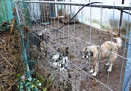 Rechtliche Vorschriften scheinen den Tierhalter wenig zu interessieren. Zumindest sollen von den insgesamt 9 überwiegend großen Hunden die meisten nicht ordnungsgemäß gemeldet gewesen sein. 5 Vierbeiner leben dauerhaft in Zwingern, die zum Teil nicht den gesetzlichen Anforderungen entsprechen. Ein über 10 Jahre alter Kangal wird an einer Kette gehalten, obwohl die Anbindehaltung von Hunden, egal in welcher Form, ab dem 1.1.2023 verboten ist. Außerdem hat die Hütte, die dem betagten Tier zur Verfügung steht, ein defektes Dach und ist nicht wärmegedämmt. Zwei gemeinsam eingesperrte ältere Herdenschutzhunde sind in einem extrem schlechten Pflegezustand. Ihr struppiges, verfilztes Fell kann seine wichtige Schutzfunktion nicht mehr erfüllen, verursacht Juckreiz und begünstigt Parasitenbefall.