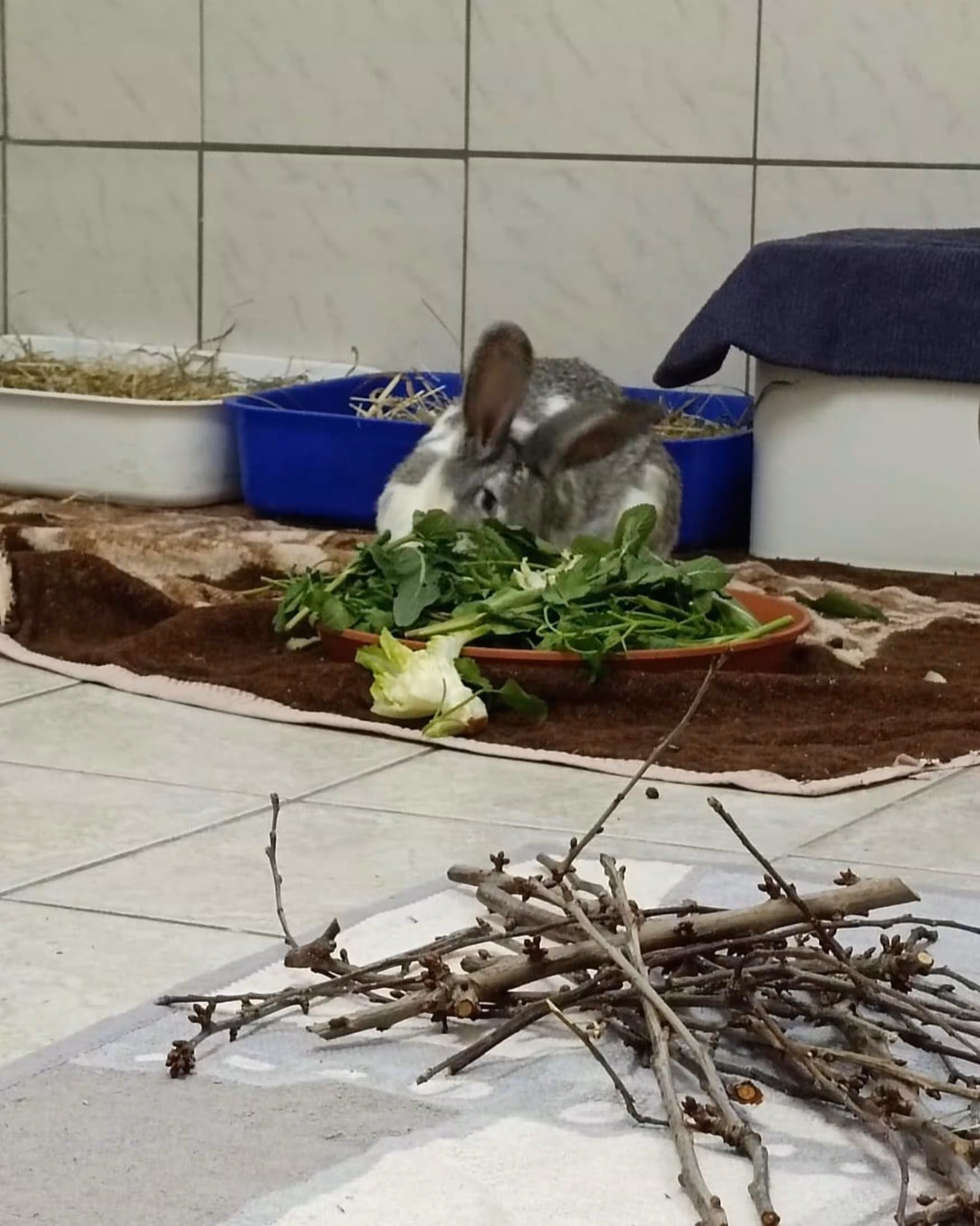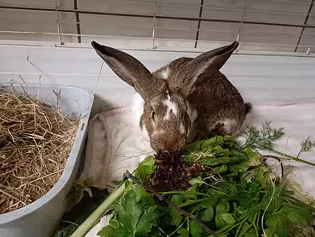 Zurückgekommen, machte sich Michaela gemeinsam mit ihrer Tochter daran, die Kaninchen langsam einzukreisen. Glücklicherweise waren die Tiere den Kontakt zu Menschen gewöhnt und deshalb nicht besonders scheu, sodass die beiden Kaninchen mit viel Ruhe und in guter Teamarbeit schnell gesichert werden konnten. Im Fußraum des Beifahrers wurden sie notdürftig untergebracht.