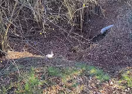 Michaela übergab ihrer Mutter schnell die Leinen und näherte sich langsam dem Tier, als plötzlich ein zweites Kaninchen auftauchte. Die armen Tiere wurden offenbar einfach im dreckigen Wassergraben "entsorgt"! Anders mag man es kaum beschreiben, denn diese Kaninchen sind domestizierte Haustiere, die in der freien Natur keine Überlebenschancen haben und in naher Zukunft sicher die Mahlzeit eines Raubtieres geworden wären.