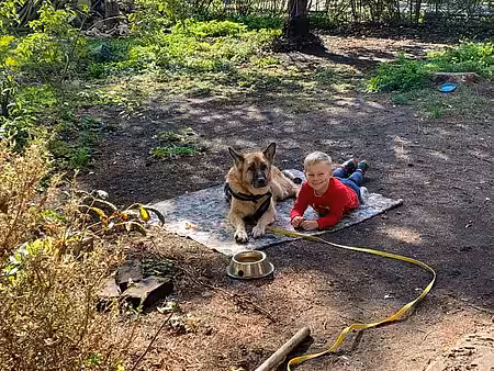 Und das Schicksal meinte es gut mit ihr. Denn es kam eine tolle Familie, die Mona regelmäßig mit auf Ausflüge nahm. Eine Adoption schien schwierig, da in der Familie Katzen leben, die Mona leider zum Fressen gern hatte. Nichtsdestotrotz stellten wir uns gemeinsam der Herausforderung. Unsere Kolleginnen begleiteten Mona und ihre Familie in der Anfangszeit engmaschig und so fanden wir einen Weg, dass alle doch noch friedlich miteinander lebten. Es erforderte zwar einiges Management, aber Monas Familie ging diesen Weg souverän, auch wenn es nicht immer leicht war.