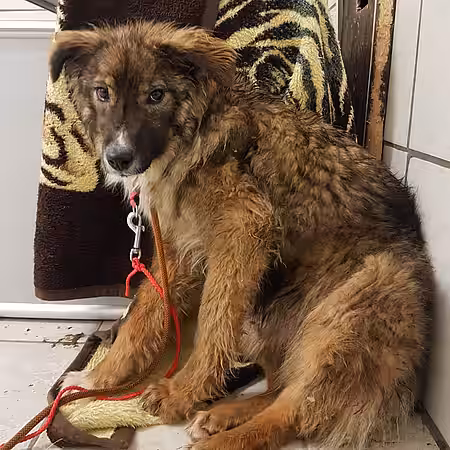 Nun ist die junge Hündin bei uns im Tierheim und scheint sich ihrem Schicksal schlichtweg ergeben zu haben. Sie lässt sich anfassen, ließ es anfangs eher „über sich ergehen“, kommt uns mittlerweile aber auch schon freudig entgegen, wenn wir das Zimmer betreten. Sie weiß nicht, wie man aus einem Futternapf frisst, und muss zahlreiche neue Dinge lernen.