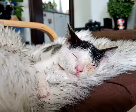 Mittlerweile hat sich Pia wirklich gut gemacht. Sie hat fleißig zugenommen und vom Schnupfen merkt man, bis auf gelegentliche Nieser, kaum noch etwas. Wir befinden uns mit ihr bei einer Berliner Augenspezialistin in Behandlung. Trotz aller Bemühungen werden wir Pias Auge nicht erhalten können. Pia befindet sich nach wie vor in Behandlung und bis zur Vermittlung wird noch etwas Zeit ins Land gehen. Diese nutzt das aufgeweckte Katzenkind jedoch gut, hat viel Blödsinn im Kopf und hält ihre Pflegefamilie auf Trab.
