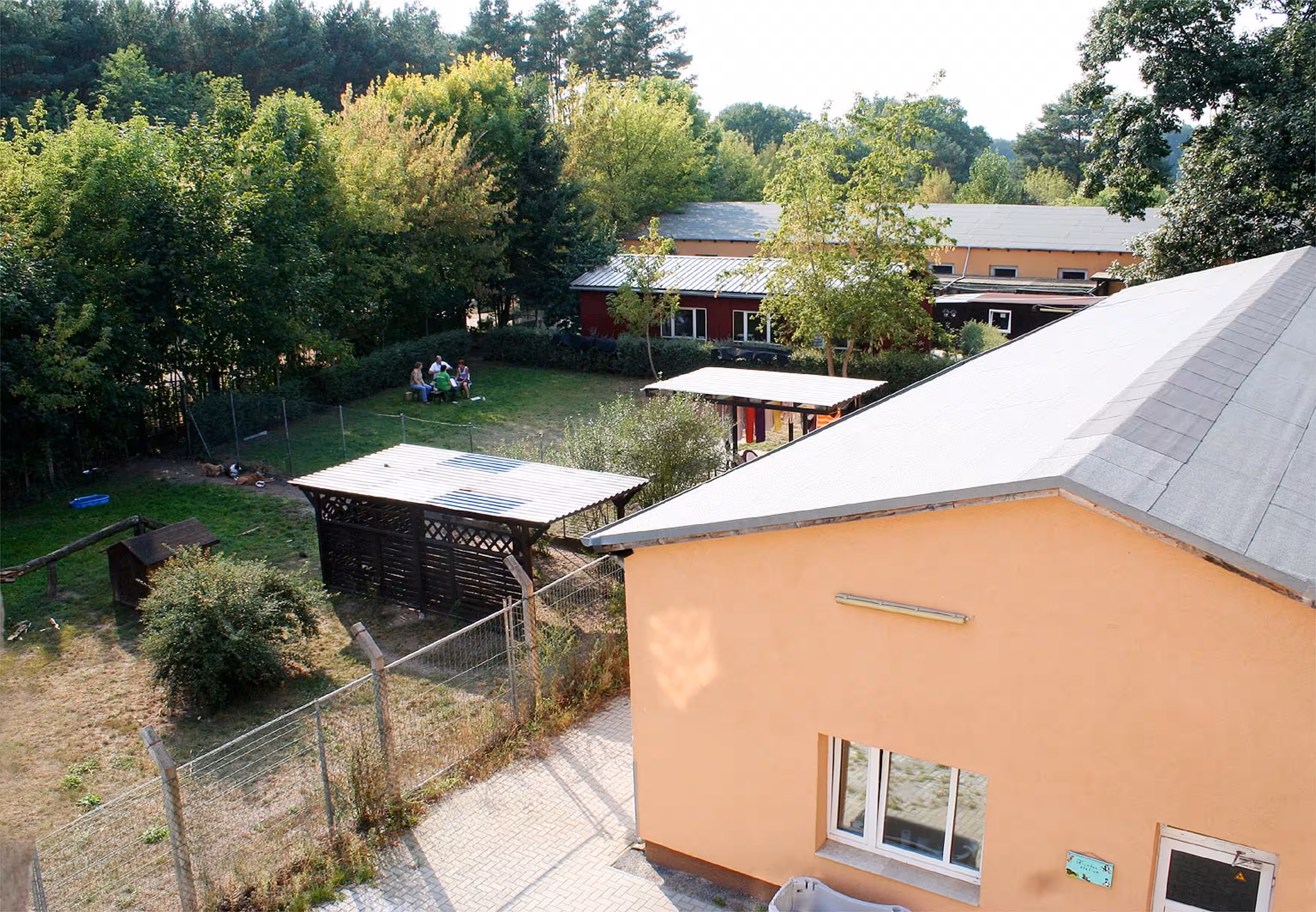 Auf 18.000 m² Gelände vor den Toren Berlins betreiben wir ein bedarfs- und fachgerechtes Tierheim. Ca. 60 Katzen, 20 Hunde sowie Kleintiere können wir bei uns aufnehmen. Außerdem gibt es auf dem Gelände eine eigene Tierarzpraxis. Im tierheimeigenen "Tierschutzzimmer" bieten wir Tierschutzunterricht für Schulklassen an.